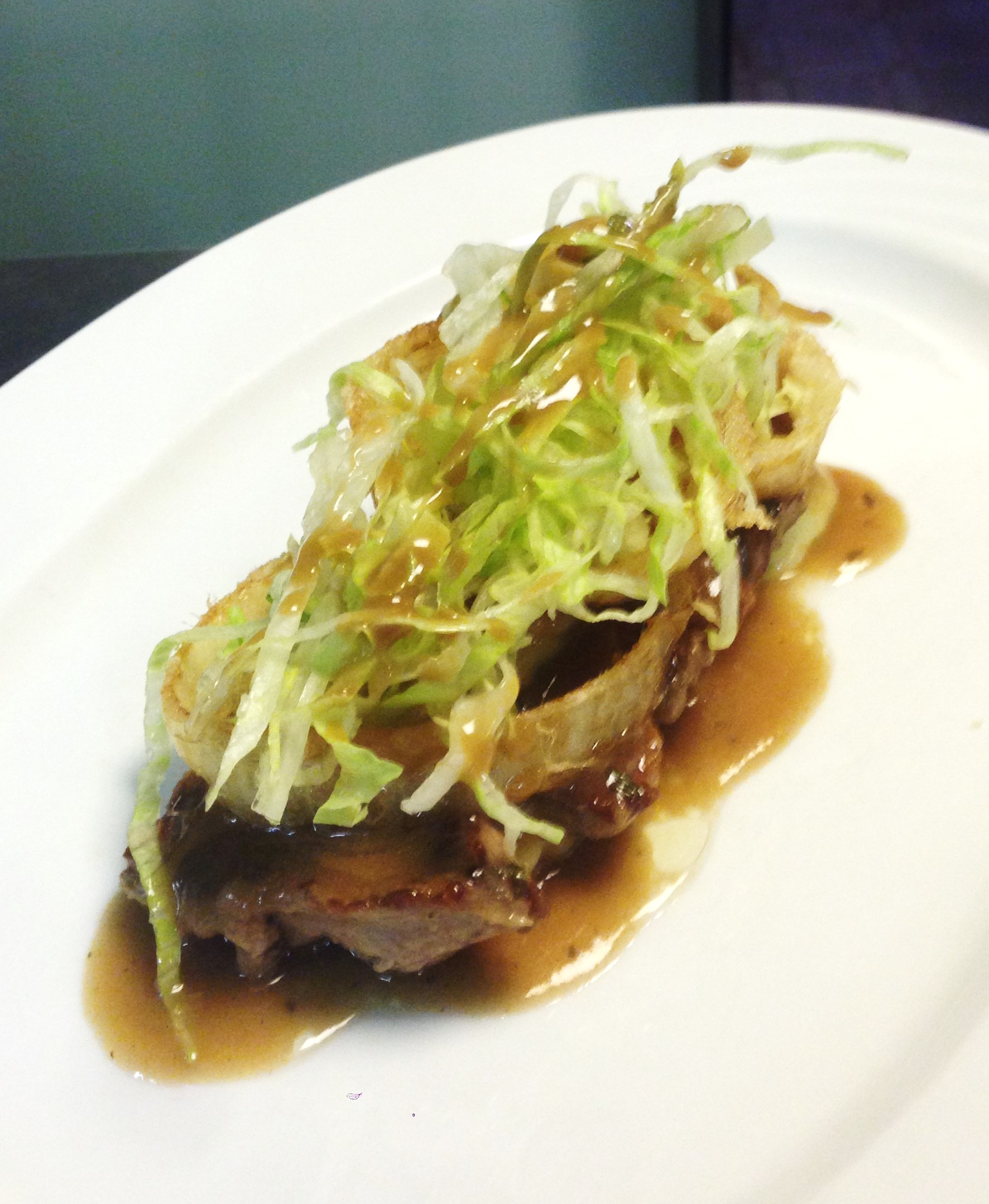 16.04-2014 – Knuspriger Zwiebel auf Rostbraten mit Schnittlauchpüree